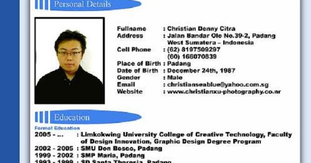 Apalagi, ketika kamu ingin menjadi bagian dari perusahaan bertaraf oleh karena itu, contoh cv bahasa inggris yang tepat perlu menjadi acuan bagi kamu yang ingin bekerja di perusahaan bergengsi. Kebanyakan format dalam pembuatan cv saat ini sudah menggunakan bahasa inggris namun ada juga cv dalam bentuk bahasa indonesia. Cv biasa digunakan untuk melamar pekerjaan, meneruskan studi, atau keperluan yang membutuhkan identitas. Contoh cv bahasa inggris berikut kumpulan cv yang dapat kamu gunakan untuk keperluan melamar kerja atau yang lain disertai berbagai pilihan keahlian. Personal details adalah berisi tentang informasi pribadi (identitas diri) seperti nama lengkap, alamat, tanggal.