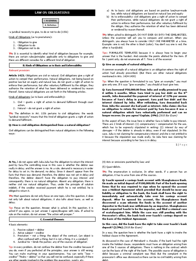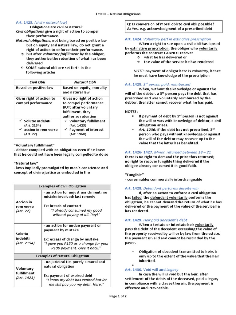 Civil and natural obligations distinguished example of obligation. Feb 18, 2012 · (art.
